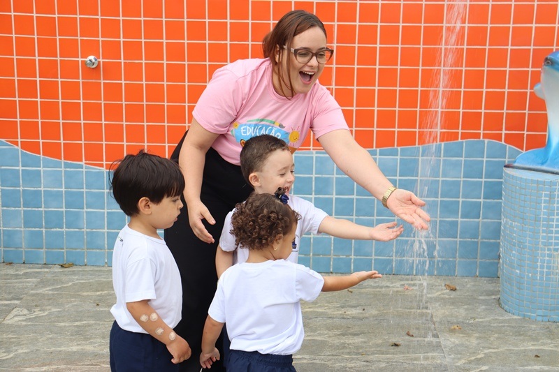 Por meio de recursos audiovisuais, como sons da chuva e do mar, e da observação atenta, as professoras promoveram um momento especial no Chuveirão da Alegria. Nesse ambiente, as crianças do Infantil II puderam explorar e escutar os diferentes sons produzidos pela água ao sair da torneira, ao tocar o chão e em seu movimento […]