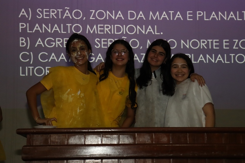 Entre as atividades, tivemos: circuito matemático, quebra-cabeça das regiões, enigmas dos biomas, corrida dos sabores, palavras que acolhem (atividade de habilidades socioemocionais), desvendando o inglês e o tão esperado Quiz Torta na Cara, tudo realizado com respeito e muito bom humor!