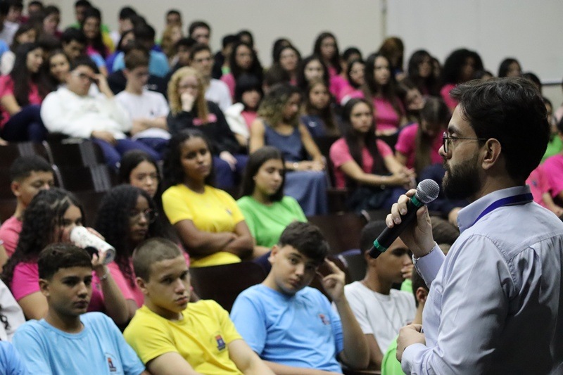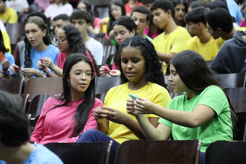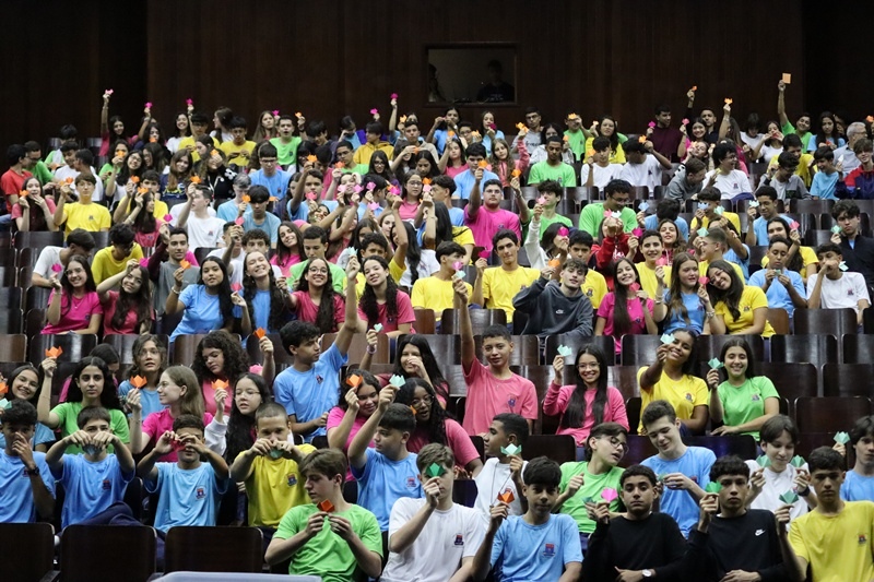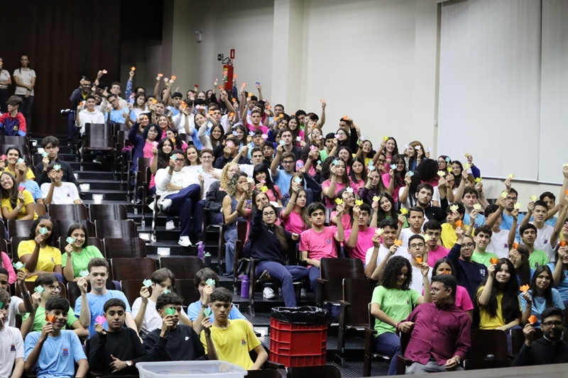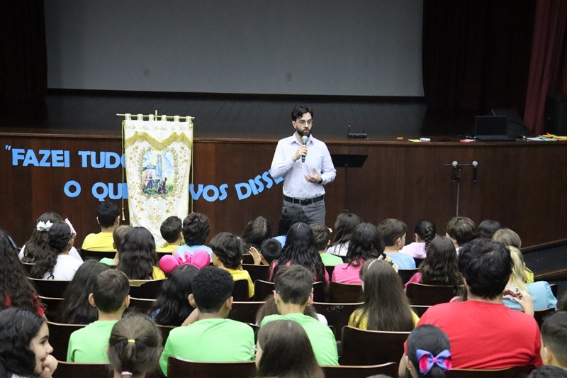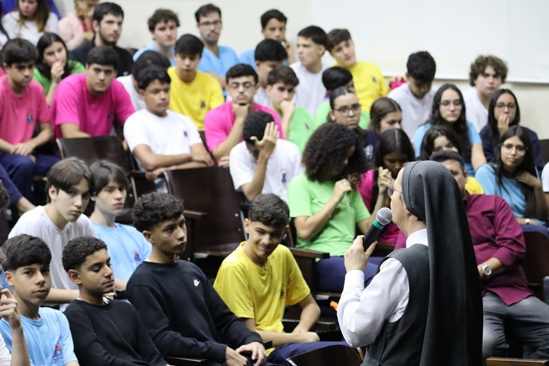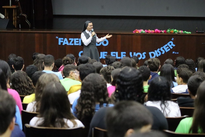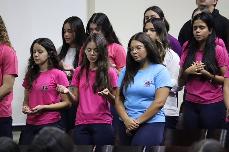 Com imensa alegria, o Serviço de Orientação Religiosa (SOR) reuniu no auditório a comunidade educativa para a acolhida dos alunos e para pedir as bênçãos de Deus neste ano letivo de 2026. Um momento vivido com muita animação e fraternidade.