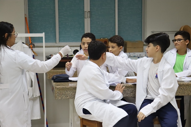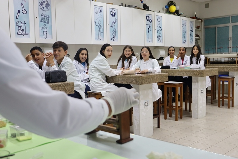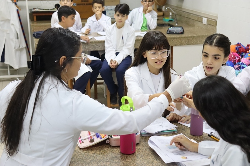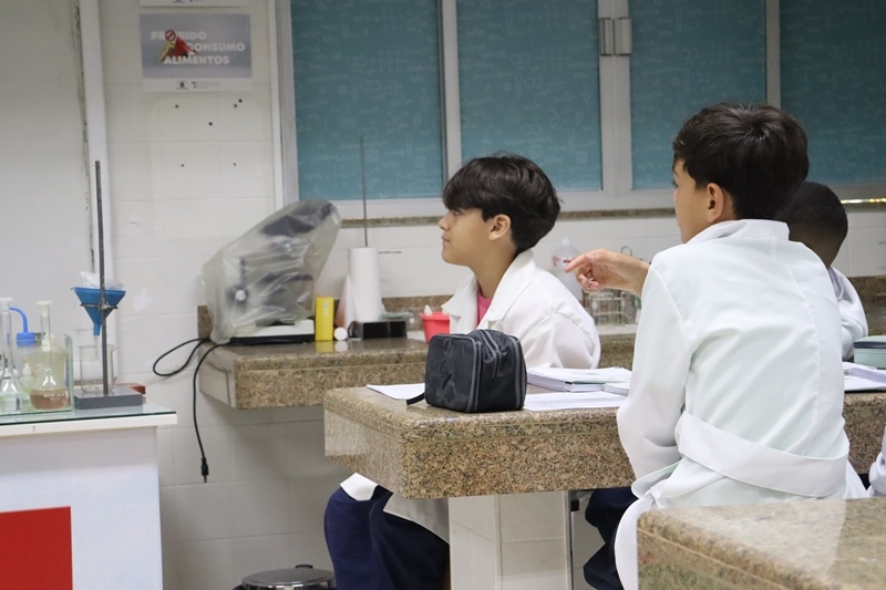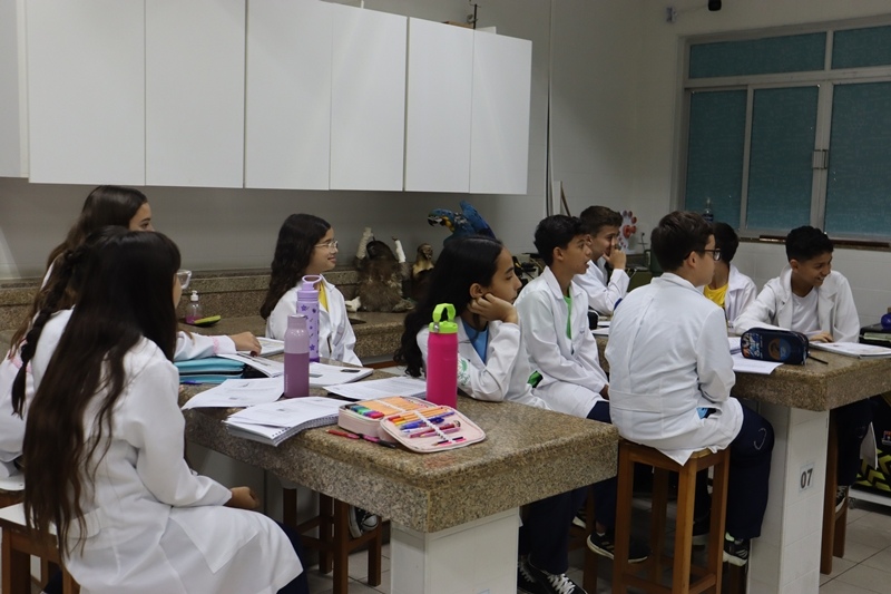 Os alunos do 6º ano, no dia 04/11, transformaram-se em cientistas por um dia em nossa aula prática de Ciências! Exploraram o fascinante mundo dos materiais, misturas, densidade e até reações químicas surpreendentes… cor mudando, objeto afundando e muita aprendizagem rolando!