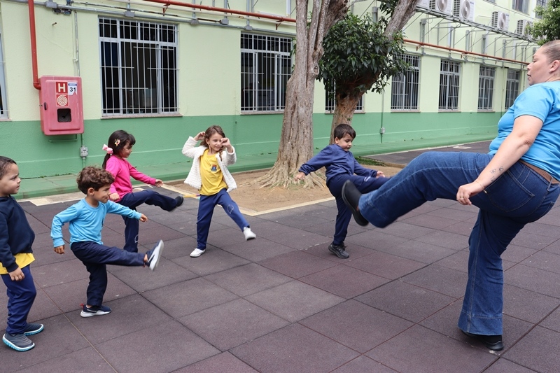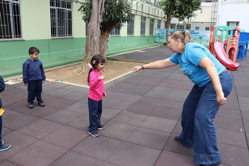 Mais do que palavras, acreditamos em ações e postura. Por isso, nossas professoras desenvolveram diversas experiências significativas com as crianças: brincadeiras, jogos criativos, contações de histórias, exploração de brinquedos, danças e músicas que celebram a diversidade e fortalecem a construção da identidade.
