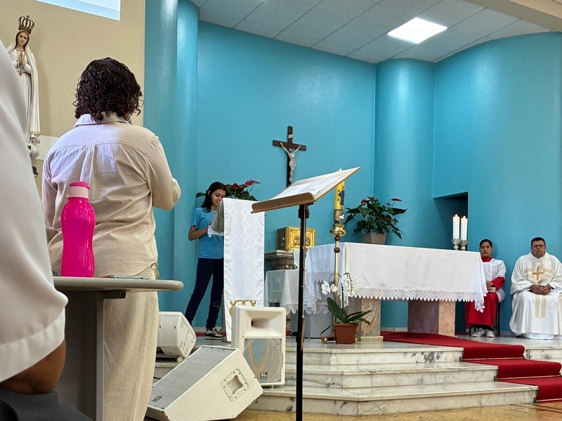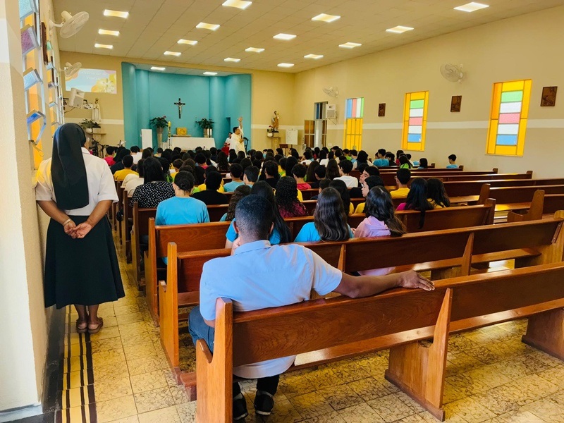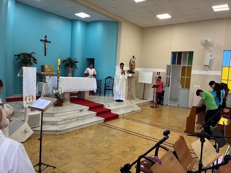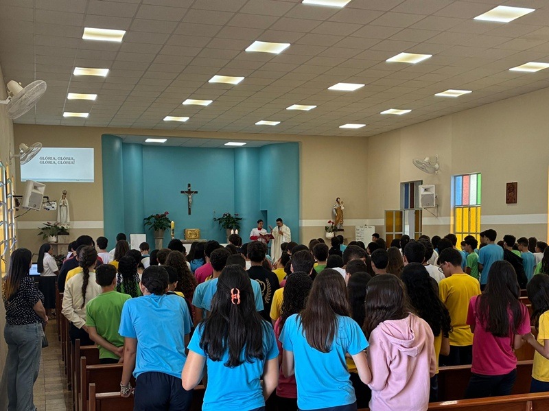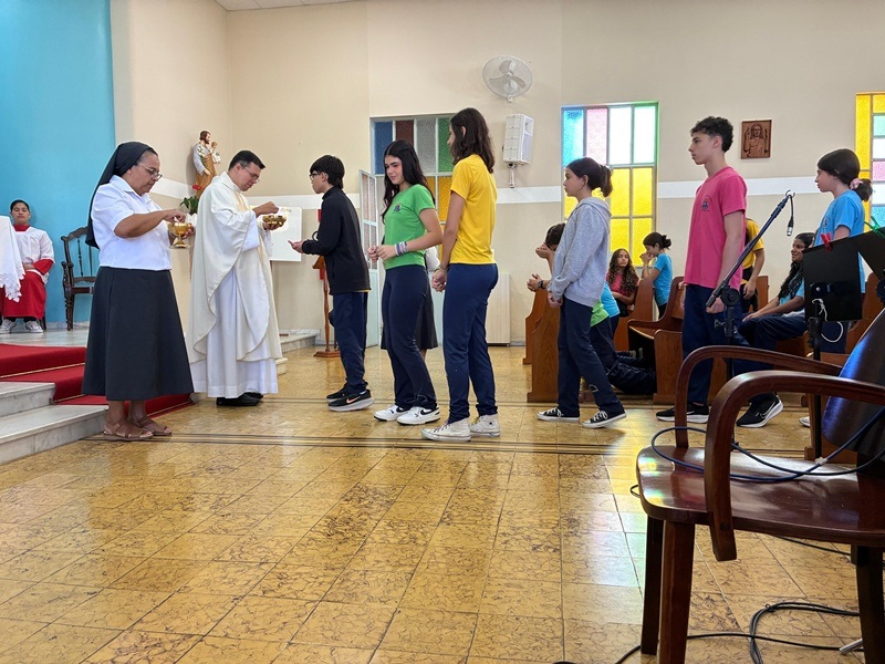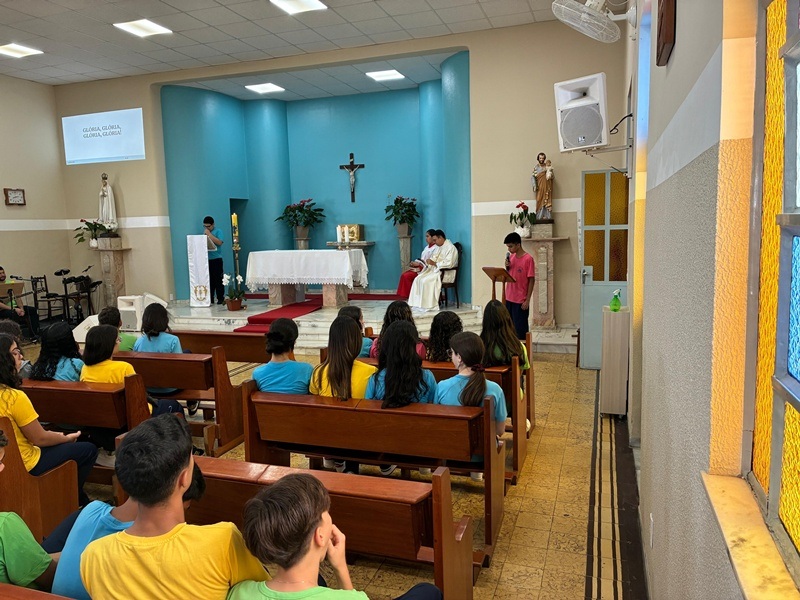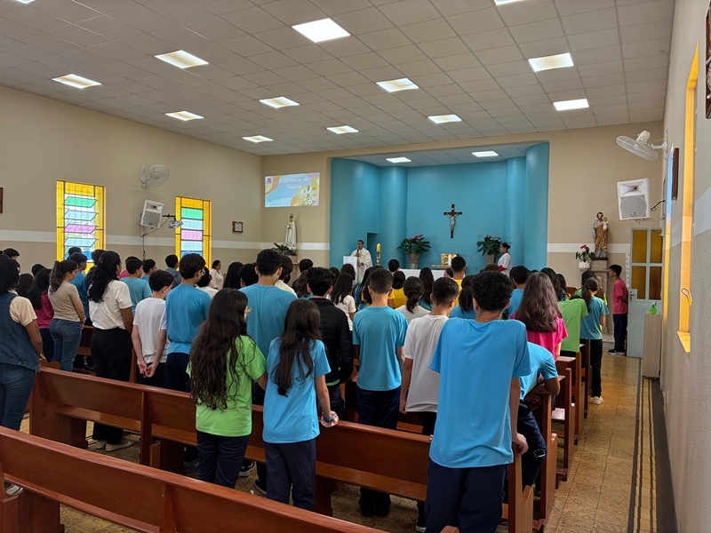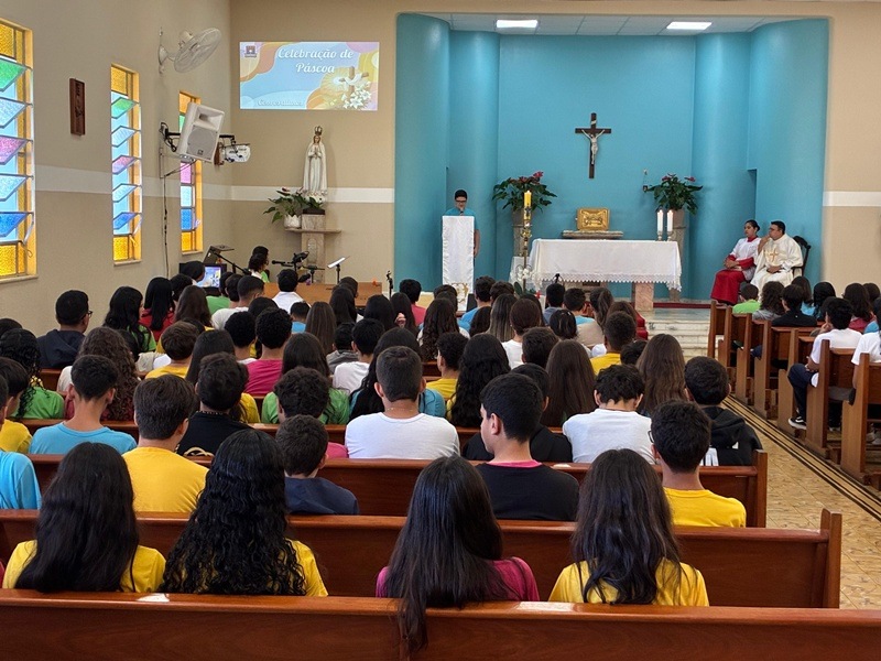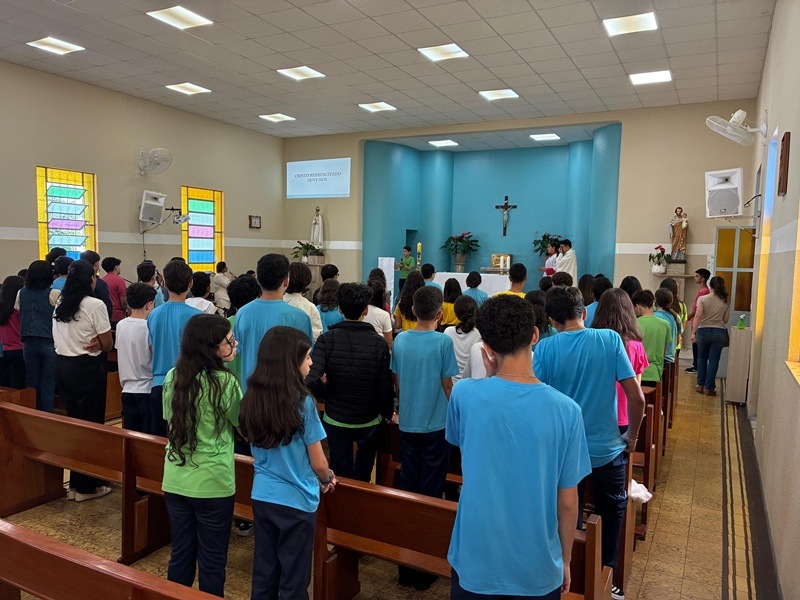 No dia 9 de abril, as turmas do 8º ano participaram da celebração da Páscoa, refletindo sobre o profundo significado da ressurreição de Cristo em nossas vidas. Durante o encontro, recordou-se o momento em que Jesus apareceu aos discípulos após ressuscitar: aproximou-se, mostrou-lhes as chagas, comeu diante deles e, por fim, abriu-lhes a inteligência para que pudessem compreender as Escrituras.