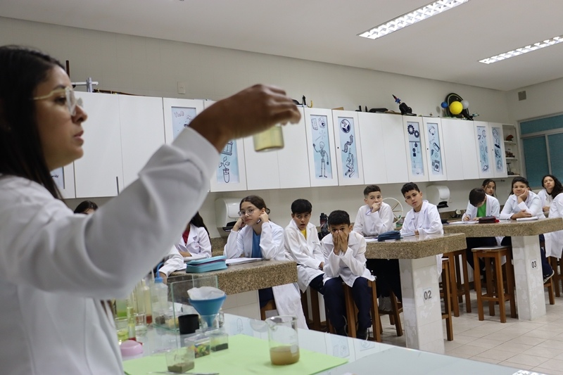 Os alunos do 6.º ano colocaram a mão na massa para desvendar os segredos da separação de misturas. Mais do que apenas seguir um roteiro, eles aprenderam na prática sobre métodos como decantação, filtração e evaporação. Ver a teoria do livro didático se transformar em um experimento real é a melhor forma de fixar o conhecimento.