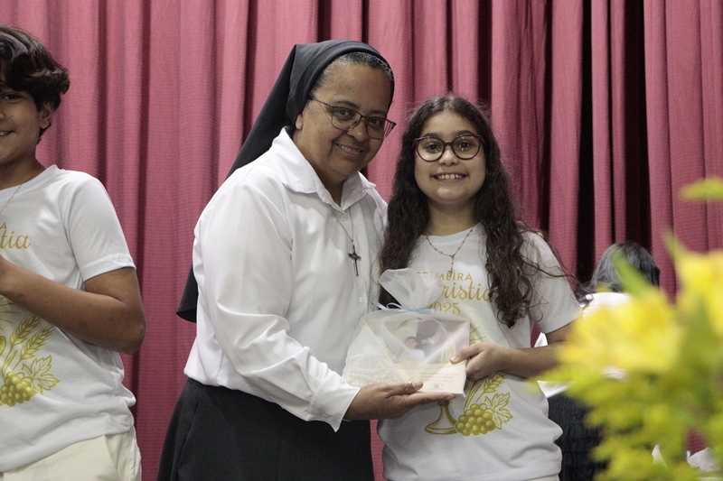 A Primeira Eucaristia representa uma nova etapa na caminhada espiritual de cada uma. Agradecemos, de coração, às famílias pelo apoio, pela confiança e pela parceria na formação cristã de nossos alunos.