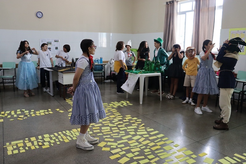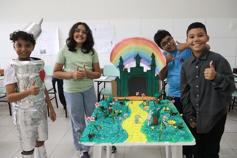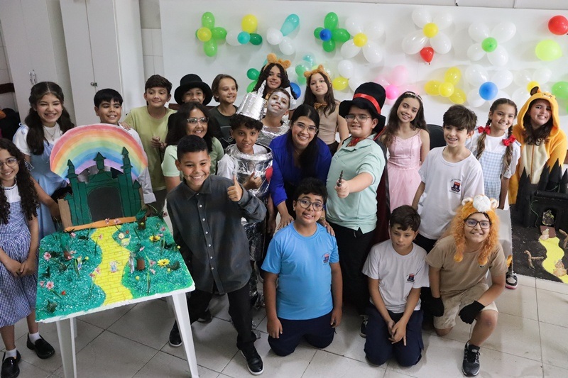 Pela estrada de Tijolos Amarelos, as turmas do 6° ano embarcaram em uma viagem entre sonhos e descobertas. Cada página lida ganhou vida em uma exposição literária, proporcionando um encontro entre literatura, arte, criatividade, imaginação e crescimento. Na XVI Semana Literária, o 6° ano trouxe vida à literatura, despertando olhares de encantamento, convidando a todos para atravessar o universo encantador de “O Mágico de Oz”, de L. Frank Baum. Cada passo nessa jornada revelou mais do que uma história: trouxe reflexões sobre quem somos e sobre tudo aquilo que podemos nos tornar com coragem, força, determinação e emoção, lembrando sempre que as respostas para tudo aquilo que buscamos estão dentro de cada um de nós. Sendo assim, que nunca nos falte coragem para seguir os nossos sonhos, coração para sentir o mundo e sabedoria para trilhar a própria estrada da vida.
