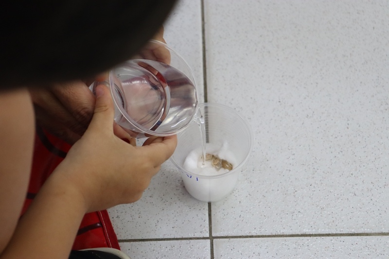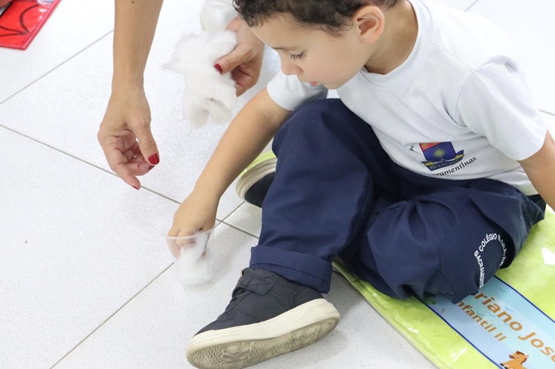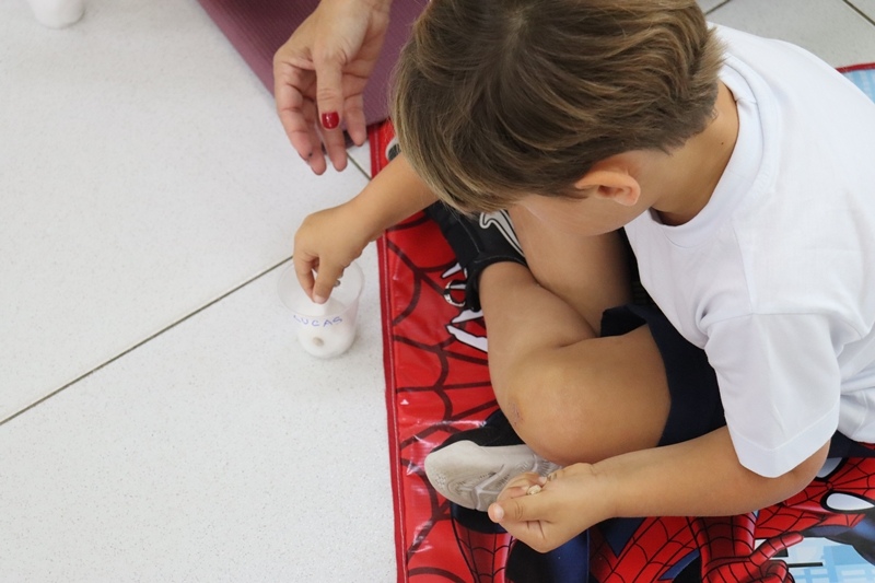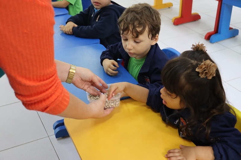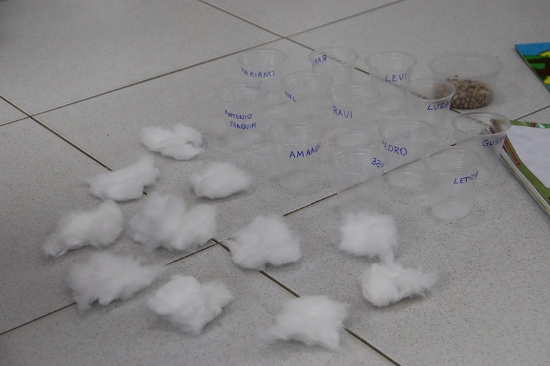 Entre risadas e descobertas, cada uma colocou com cuidado seu feijãozinho sobre o algodão úmido, observando com atenção os detalhe desse processo mágico da natureza. Agora, a expectativa é grande! A cada dia, eles acompanham o crescimento da sementinha, encantando-se com o aparecimento do primeiro brotinho.