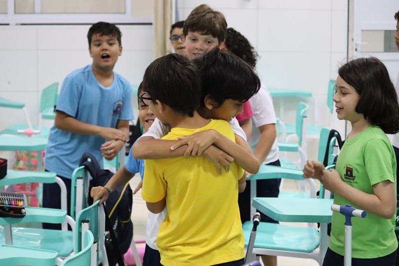 Foi um dia de descobertas: eles conheceram seus professores, reencontraram colegas, exploraram os espaços do colégio e já começaram a construir novas histórias.