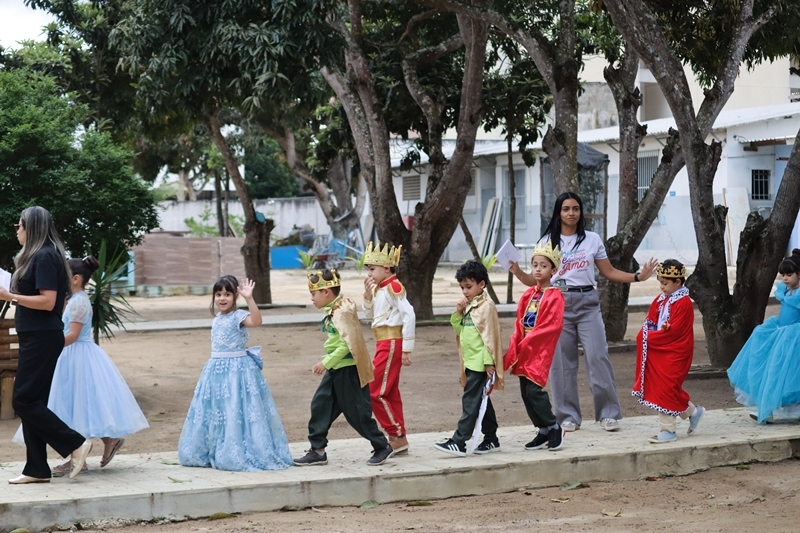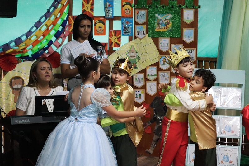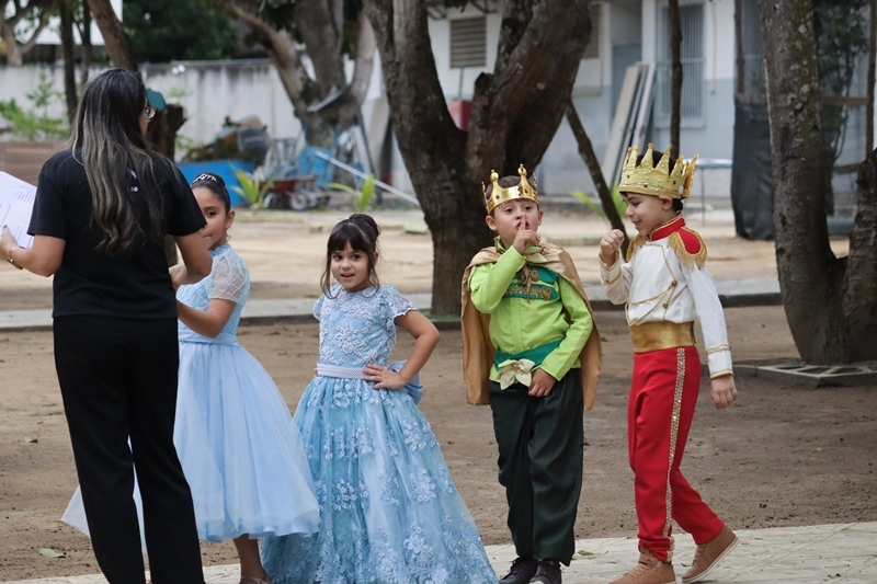 No projeto “Literatura: histórias que ensinam, divertem e transformam”, as crianças foram incentivadas à leitura e à reescrita de histórias por meio de parlendas, valorizando os ensinamentos e valores presentes nas narrativas. Também criaram paródias e participaram de atividades artísticas, enriquecendo o processo de aprendizagem.