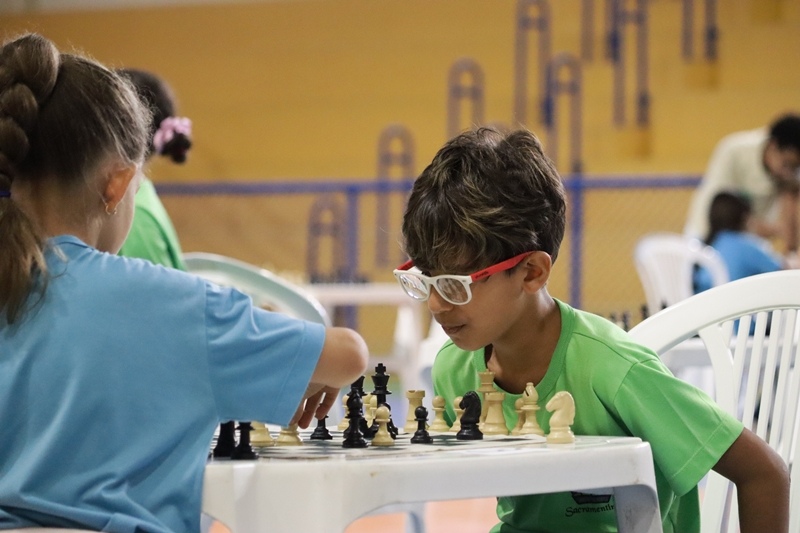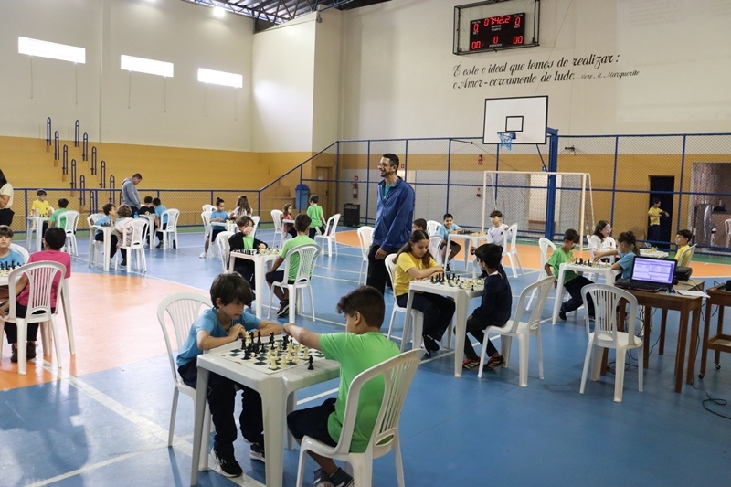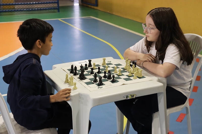 Nos dias 24, 25 e 27 de novembro, realizamos o torneio “Explorando o universo do xadrez” com as turmas de 1.º ao 4.º ano. Mais do que incentivar a prática do xadrez, o evento teve como objetivo contribuir na formação de indivíduos mais críticos, colaborativos e respeitosos, estimulando também a autonomia nas tomadas de decisão. Foi um momento enriquecedor de socialização, interação e comprometimento, marcado por um ambiente saudável de competição e pela participação entusiasmada de todos os envolvidos.
